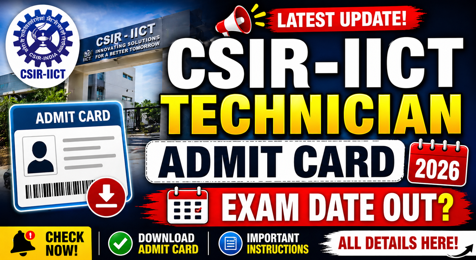 CSIR-IICT Technician Admit Card 2026: CSIR-IICT Hyderabad ने अपने Technician (1) भर्ती (Advt. No. 05-2025) के तहत Post Codes MLTC-02, NSMW-03, PHMC-04, CAHA-05 के लिए Trade Test और Written Examination की dates announce की हैं। Trade Test 16 May 2026 को होगा और इसे qualify करने वाले candidates को Written Exam 17 May 2026 (Tentative) के लिए बुलाया जाएगा। Admit Card registered email पर exam से 1 सप्ताह पहले भेजा जाएगा।