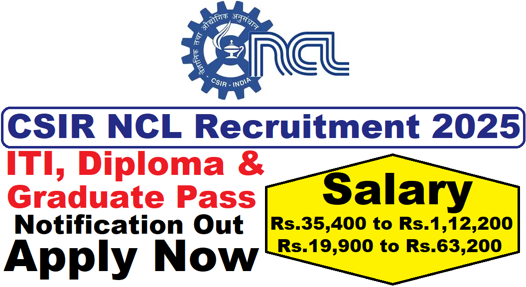 CSIR NCL Recruitment 2025 : CSIR – National Chemical Laboratory (NCL) की ओर से 34 Posts पर Recruitment निकली है जिसका Online form 12/12/2025 से शुरू है | CSIR NCL Recruitment 2025 Online form 12/01/2025 तक भरा जायेगा |ITI, Diploma & Graduate Pass in various candidates CSIR NCL Recruitment 2025 online form भर सकता है | Interested and eligible candidates CSIR NCL Recruitment 2025 form भर सकते हैं |CSIR NCL Recruitment Full Notification निचे दिया गया हैI CSIR NCL Recruitment Apply Link निचे दिया गया है I