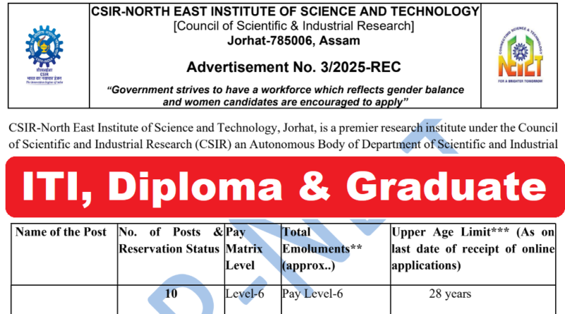 | Recruitment Organization | Council of Scientific and Industrial Research , North East Institute of Science and Technology |
