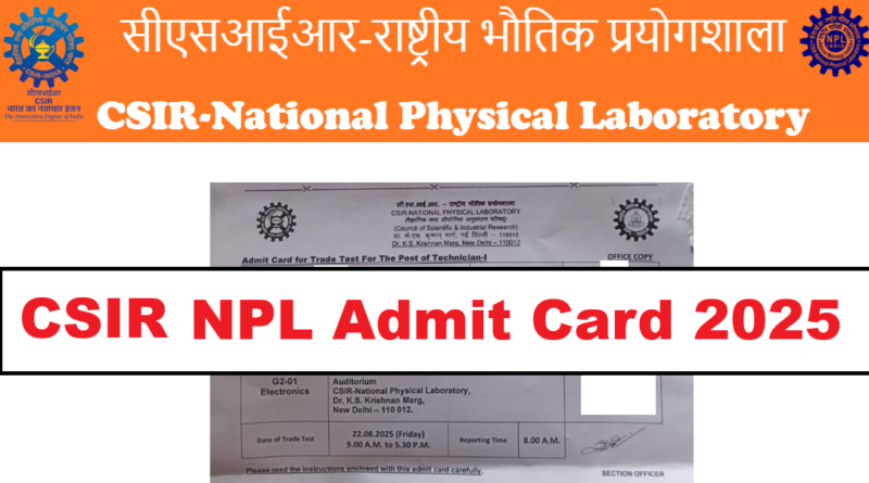 CSIR NPL Recruitment 2025 Trade Test Admit Card and Merit list out @nplindia.in
