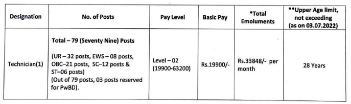 - Schedule of Trade Test for 79 Posts of Technician (1) under various post codes advertised vide advertisement no. Rectt./03/2022 – reg