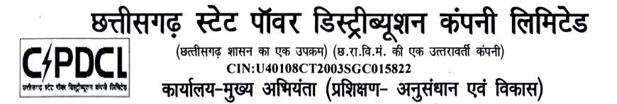 Speed Post Application : Main Engineer (Training Organization & Development), Chhattisgarh State Power distribution Company Limited , Kota Road, Gudhyari, Raipur 492009 (Chhattisgarh).