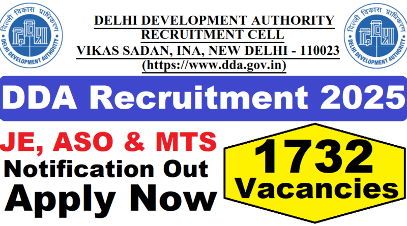 DDA Recruitment 2025, 1732 Posts, JE, ASO & MTS Posts Latest Vacancy 2025, 05/11/2025 Last Date
