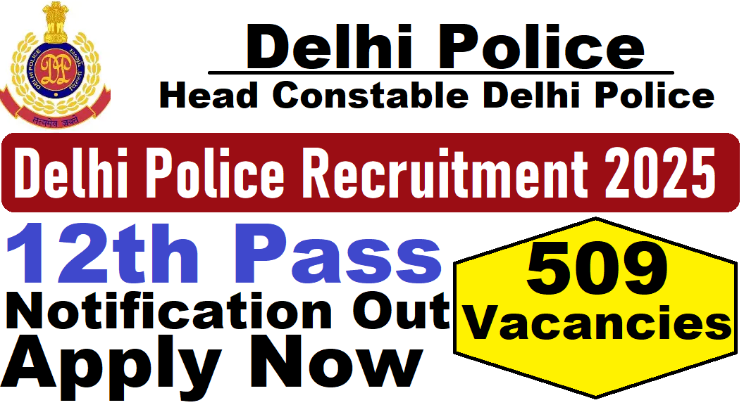Delhi Police Recruitment 2025 : Head Constable Delhi Police की ओर से 509 Posts पर Recruitment निकली है जिसका Online form 29/09/2025 से शुरू है |Delhi Police Recruitment 2025 Online form 20/10/2025 तक भरा जायेगा | 12th Pass from recognized candidates Delhi Police Recruitment 2025 online form भर सकता है | Interested and eligible candidates Delhi Police Recruitment 2025 form भर सकते हैं | Delhi Police Recruitment Full Notification निचे दिया गया हैI Delhi Police Recruitment Apply Link निचे दिया गया है I
