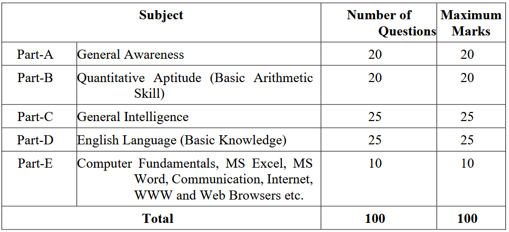 The Computer Based Examination will consist of one Objective-Type Paper containing 100 Questions carrying 100 marks.