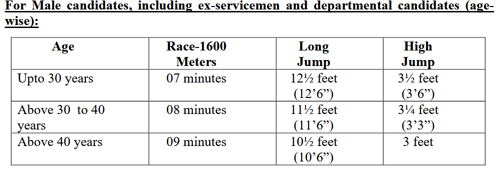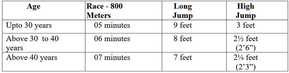 Physical Endurance Test (Qualifying) A) Male Candidates: