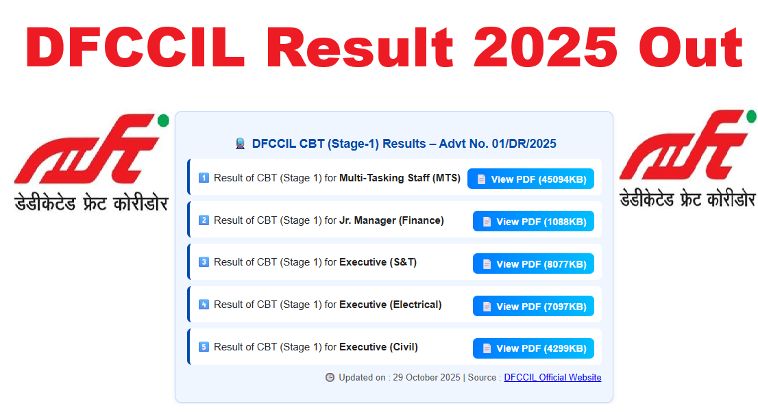 ЁЯЪЖ DFCCIL CBT (Stage-1) Results тАУ Advt No. 01/DR/2025