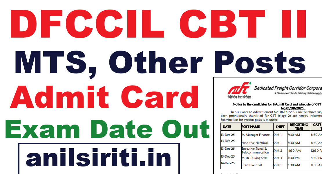 DFCCIL CBT II Exam Date Out: In pursuance to Advertisement No. 01/DR/2025 on the above subject, all the candidates who have been provisionally shortlisted for CBT (Stage 2) are hereby informed that the schedule for Online Examination for various posts is as under. Notice to the candidates for E-Admit Card and schedule of CBT (Stage 2) against Advt No.01/DR/2025. DFCCIL CBT II Exam between 13-12-2025 to 14-12-2025. DFCCIL MTS CBT II Exam on 13-12-2025 Shift 3. DFCCIL CBT II Admit Card released on 09-12-2025. DFCCIL CBT II City intimation Slip release on 26-11-2025. DFCCIL CBT II Exam Notice given below.