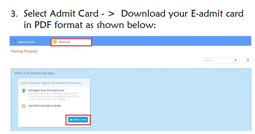 The link for downloading the E-Admit Card will be sent to all eligible candidates on their registered e-mail ID.