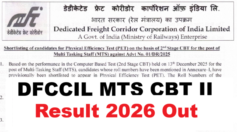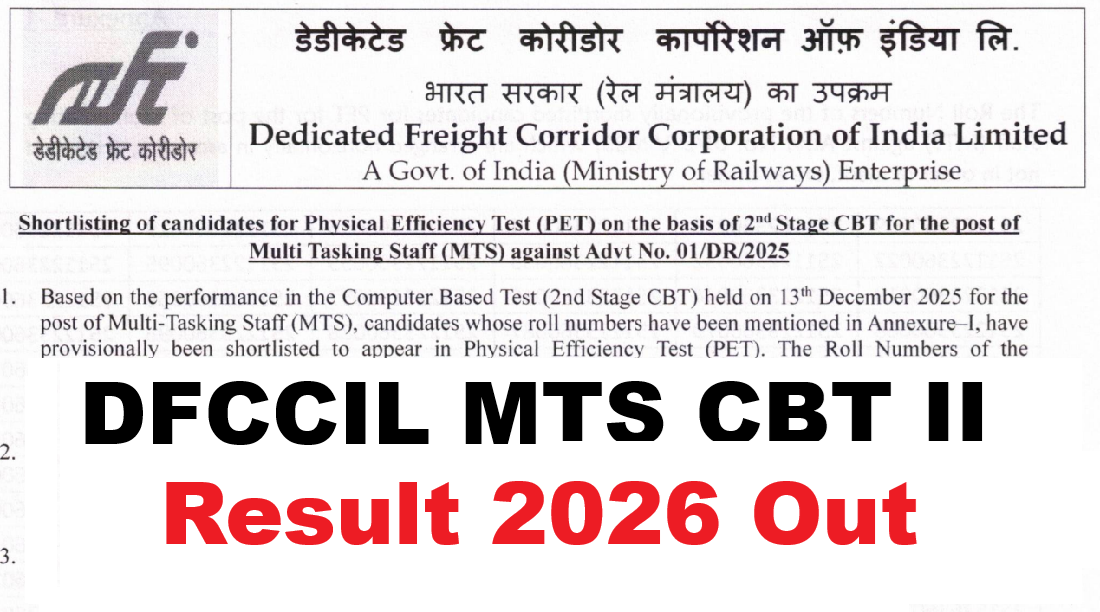 DFCCIL CBT II Result 2026 Out, DFCCIL CBT II Cut off 2026 Out : DFCCIL has released the MTS CBT II Result 2026 on its official website. Candidates who appeared in the CBT 2 examination can now check their result, cut off marks and merit list PDF online. The result includes roll numbers of shortlisted candidates for the next stage of selection. Applicants are advised to download the result PDF and check their qualifying status. For category-wise cut off marks and further updates, visit the official DFCCIL website regularly.