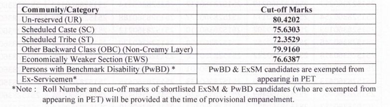 ✓ PwBD (Persons with Benchmark Disability) और Ex-Servicemen उम्मीदवारों को PET (Physical Efficiency Test) से छूट दी गई है।