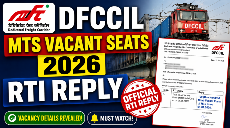 DFCCIL MTS Vacant Seats 2026 RTI Reply: Dedicated Freight Corridor Corporation of India Limited की ओर से ITI Pass candidates के लिए MTS की अभी कितनी Vacant Posts है और Next Vacancy कब तक आयेगी इसकी जानकारी इस Posts पर दी गयी है | DFCCIL ने RTI Reply में बताया की अभी कितनी Vacant Posts हैं |