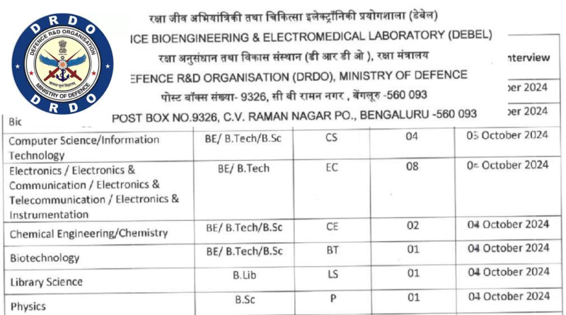 DRDO DEBEL Apprentice Recruitment 2024: Defence Bioengineering & Electromedical Laboratory (DEBEL) Bangalore, a Premie-Institute under the aegis of Defence R&D Organization (DRDO) is engaged in Research and Development in Life Support Systems, Biomedical Devices, Environmental Protection Systems and Aircrew Protective Syscems.
