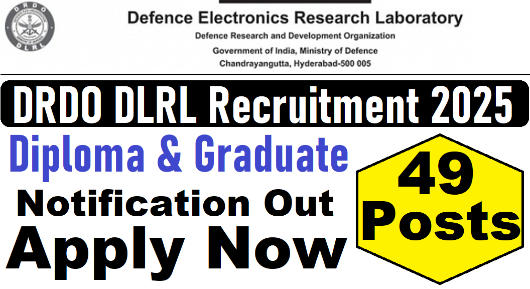 DRDO DLRL Recruitment 2025 : Defence Research & Development Organization (DRDO) की ओर से (Apprentice) 46 Posts पर Walk-In-Interview निकली है जिसका Interview Date 22 & 23 December 2025 , सुबह 09:30 बजे है|Diploma & Graduate candidates Offline Walk-In-Interview में शामिल हो सकते हैI आपकी Walk-In-Interview Location – Defence Electronics Research Laboratory (DLRL) , Chandrayangutta, Hyderabad – 500 005 रहने वाला हैI DRDO DLRL Walk-In-Interview 2025 Full Notification निचे दिया गया है |