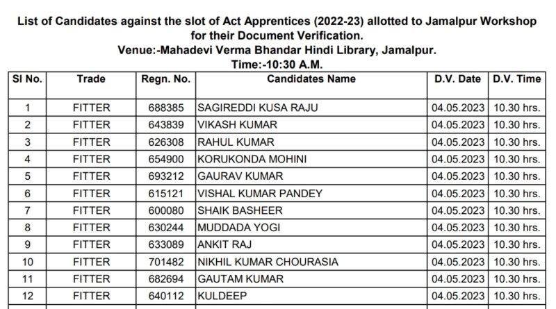 Eastern Railway Apprentice 2022-23 Merit list out, Document Verification out 2023
