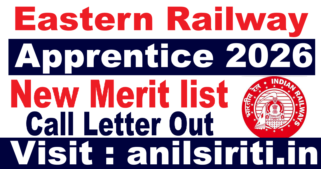 Eastern Railway Apprentice 2026 New merit list out: Railway Recruitment Cell (RRC), Eastern Railway, Kolkata ने Notification No. RRC-ER/Act Apprentices/2025-26 के अंतर्गत Liluah Workshop और Howrah Division के Act Apprentices (2025-26) की Document Verification (DV) के लिए Important Notice जारी किया है। DV 10 April 2026 से 24 April 2026 तक Canteen Hall, Liluah Workshop, Eastern Railway में आयोजित की जाएगी। E-Call Letter 02 April 2026 (17:00 hrs.) से Download करना शुरू हो गया है।