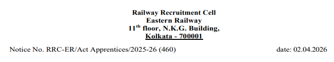 Notice No. RRC-ER/Act Apprentices/2025-26 (460) | Date: 02.04.2026