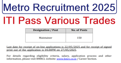 - The candidate must have passed 10th class examination or its equivalent (under 10+2 examination system) with minimum 50% marks, in aggregate, from recognized Board and also should possess the National Trade Certificate in the notified trade issued by NCVT/SCVT.
