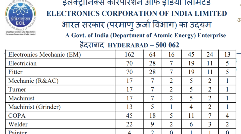 ECIL Apprentice Recruitment 2024, ITI Electrician, Fitter, Electronic Mechanic, COPA etc