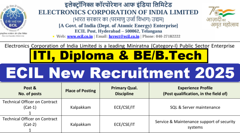 ECIL New Recruitment 2025, ITI, Diploma & BE/B.Tech Pass Latest Vacancy 2025, ecil.co.in/jobs