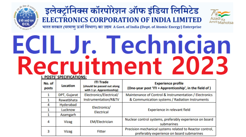 ECIL Recruitment 2023, Junior Technician, ITI latest vacancy 2023