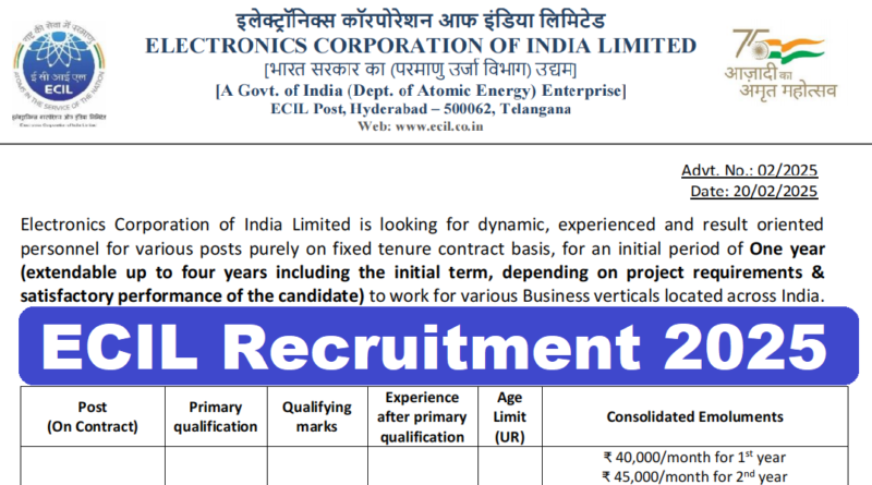 ECIL Recruitment 2025 : Electronics Corporation of India Limited (ECIL) की ओर से Project Engineer, Technical Officer, Assistant Engineer, Assistant Project Engineer & Senior Artisan posts पर Walk-In-Interview निकली है जिसका Interview Date 27 February 2025 to 06 March 2025 , सुबह 09:00 बजे है|ITI/Diploma & BE/B.Tech Pass in various candidates Offline Walk-In-Interview में शामिल हो सकते हैI आपकी Walk-In-Interview Location – निचे दिया गया है | ECIL Recruitment 2025 Full Notification निचे दिया गया है |