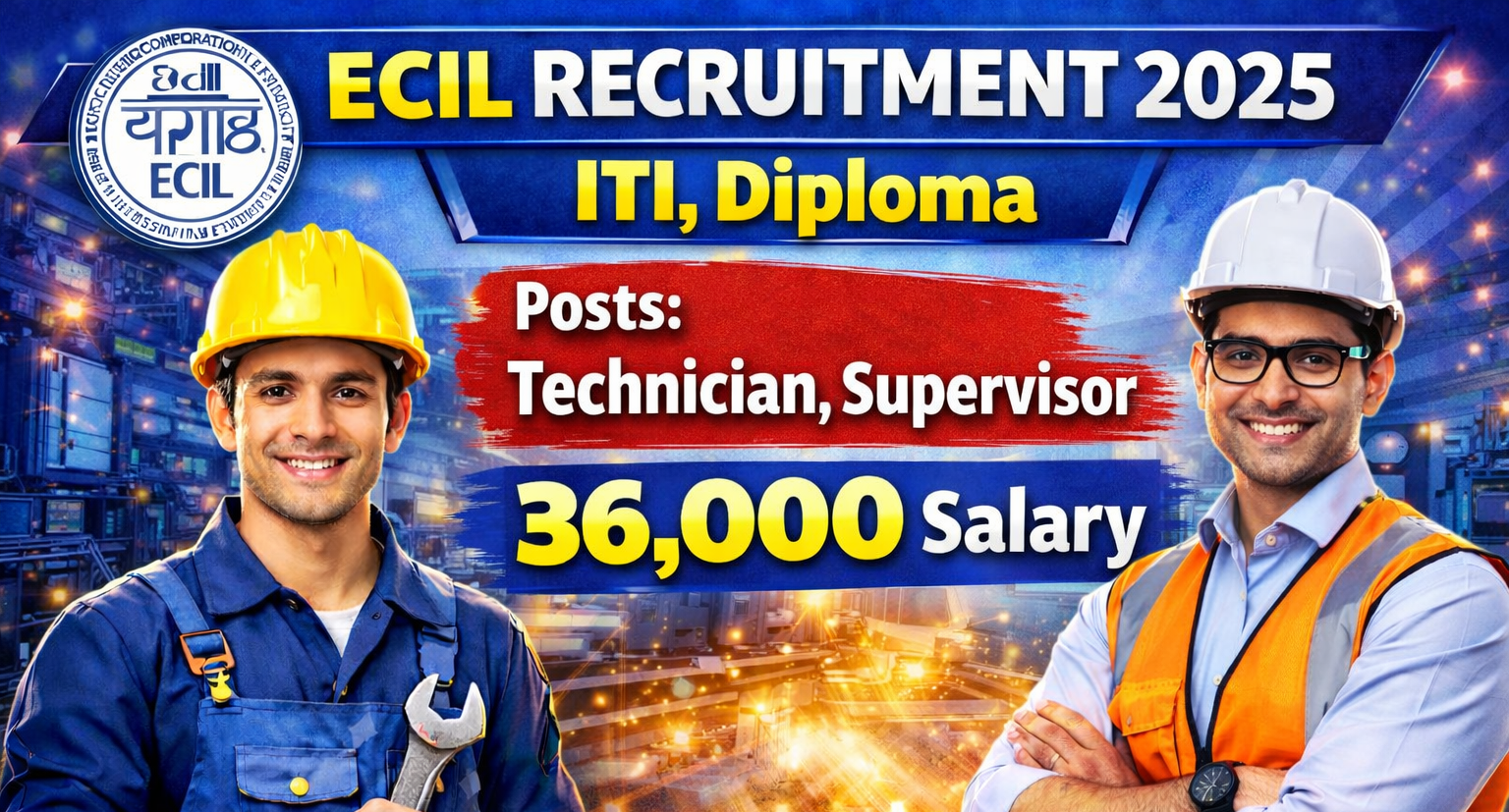 ECIL Recruitment 2026: Electronics Corporation of India Limited is inviting on-line applications from dynamic, experienced and result oriented personnel for various posts purely on fixed tenure contract basis, for an initial period of One year (extendable up to 4 years including initial term, depending on project requirements & satisfactory performance of the candidate) to work for various Business verticals located in Hyderabad. ECIL Recruitment for the posts of Technician, Supervisor. ECIL Recruitment 2026 Online form apply before 20-01-2026. ECIL Recruitment 2026 for ITI and Diploma Candidates. ECIL Recruitment 2026 Notification and Apply l ink given below.