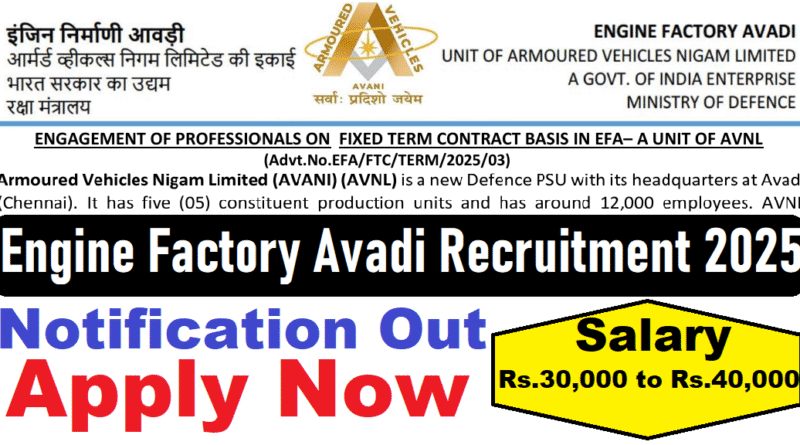 Engine Factory Avadi Recruitment 2025, Junior & Assistant Manager Posts Latest Vacancy 2025, 31/10/2025 Last Date