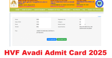 Engine Factory Avadi Recruitment 2025 Application Fee