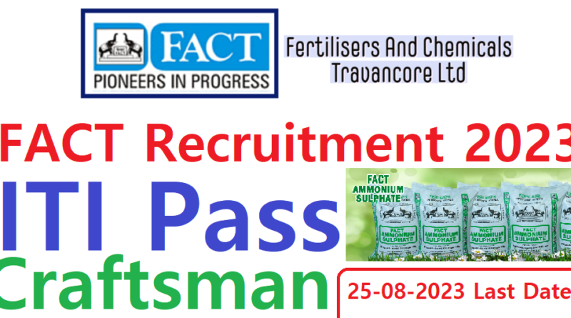 FACT Recruitment 2023: The Fertilisers and Chemical Trancancore Limited की ओर से Craftsman (Fitter cum Rigger) Posts पर Contract Basis recruitment निकली है | FACT Recruitment Online form भरना शुरू हो चूका है | FACT Recruitment 2023 Online form 25 August 2023 तक भरा जायेगा और 04-09-2023 तक FACT Recruitment 2023 Offline Hard Copy भेजने की अंतिम तारीख है | FACT Recruitment 2023 की अधिक जानकारी निचे दी गई है | ITI Jobs की Preparation के लिए Anil Sir ITI App Download करे |