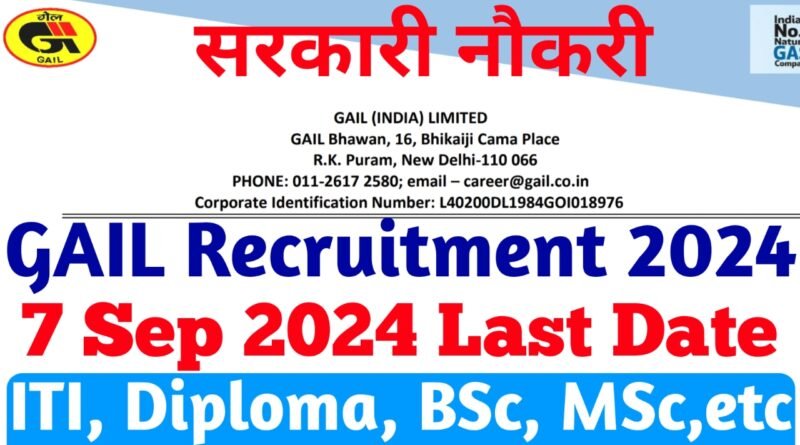 GAIL Recruitment 2024, 7 Sep 2024 last date @gailonline.com