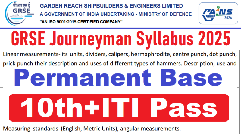 GRSE Journeyman Recruitment Exam Syllabus 2025, ITI Pass Latest Vacancy 2025