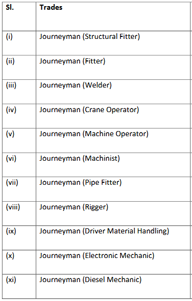 | Journeyman (Computer Operator) | Matriculation (10 std. pass) with NAC / NTC in COPA / PASAA / Information Technology/ Data Base System Assistant/ Desktop Publishing Operator trades |