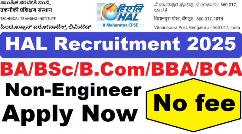 HAL Recruitment 2025 : Hindustan Aeronautics Limited (HAL), Technical Training Institute has released Walk-In-Interview for Apprentice Posts, whose Interview Date is 30/06/2025, 08:00 AM. BA/BSc/B.Com/BBA/BCA Pass in various candidates can participate in Offline Walk-In-Interview. Your Walk-In-Interview Location is going to be – Technical Training Institute, Suranjan Das Road Bangalore-560017. HAL Walk-In-Interview 2025 Full Notification is given below.