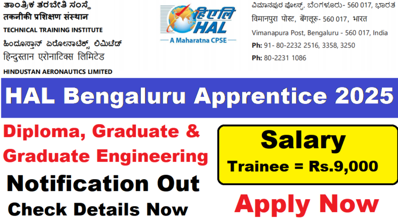 HAL Bengaluru Apprentice 2025, Diploma, Graduate & Graduate Engineering Latest Vacancy 2025