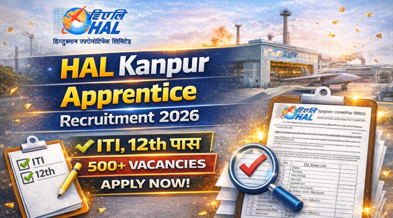 HAL Kanpur Apprentice Recruitment 2026: Hindustan Aeronautics Ltd की ओर से ITI Pass और 12th Pass Candidates के लिए Apprentice निकली है जिसका Offline form निचे दिया गया है | HAL Kanpur Apprentice 2026 Form 30-01-2026 तक भरे जायेंगे | HAL Kanpur Apprentice की पूरी जानकारी निचे दी गयी है | HAL Kanpur Apprentice 2026 Notification निचे दी गयी है |