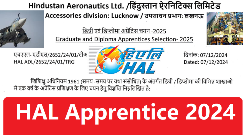 HAL Lucknow Apprentice Recruitment 2024, Degree/ Diploma Latest Vacancy 2024, 21/12/2024 Last Date