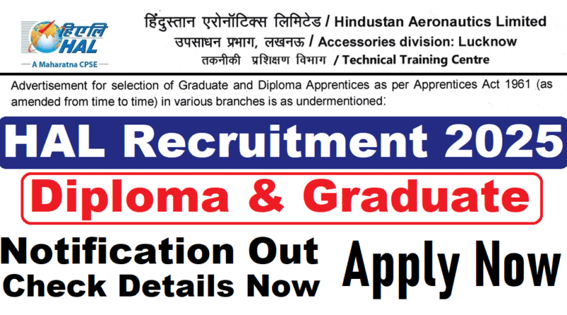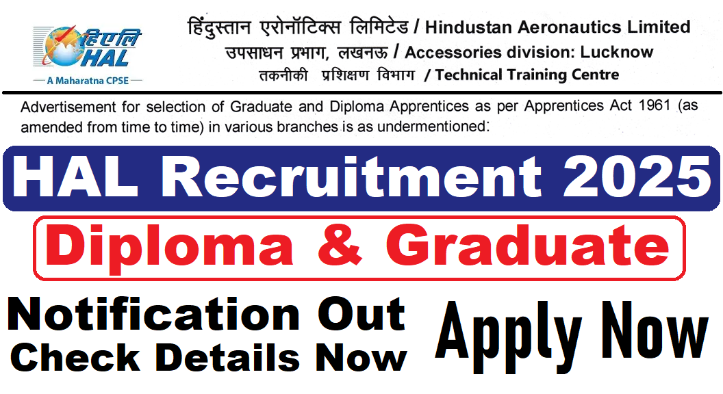 HAL Lucknow Apprentice Recruitment 2025, Diploma & Graduate Pass Latest Vacancy 2025, 22/12/2025 Last Date