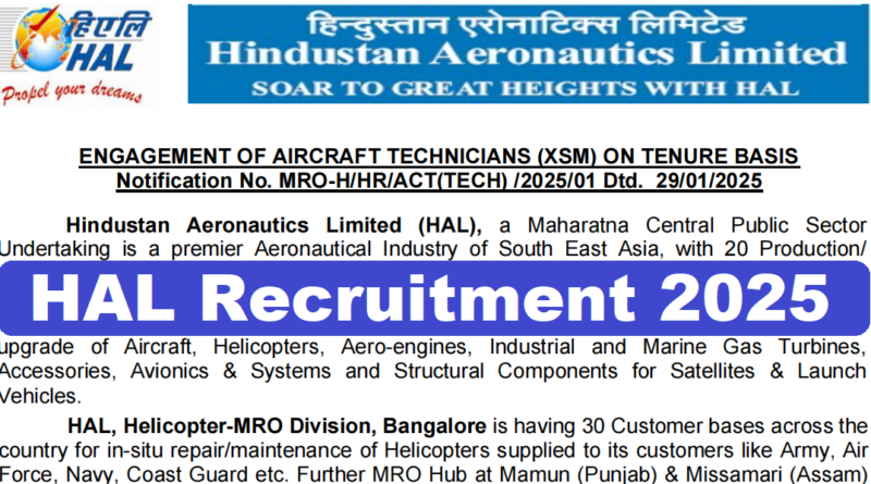 HAL Recruitment 2025, Aircraft Technician Latest Vacancy 2025, 18/02/2025 Last Date