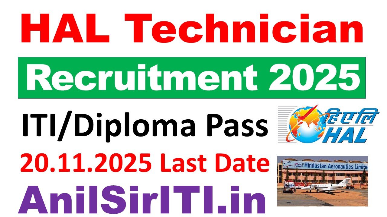 HAL Technician Recruitment 2025: Hindustan Aeronautics Limited (HAL), a Maharatna Central Public Sector Undertaking is a premier Aeronautical Industry of South East Asia, with 20 Production / Overhaul / Service Divisions and 11 co-located R & D Centres spread across the country. HAL’s spectrum of expertise encompasses Design, Development, Manufacture, Repair, Overhaul and upgrade of Aircraft, Helicopters, Aero-engines, Industrial Marine Gas Turbines, Accessories, Avionics & Systems and Structural Components for Satellite & Launch Vehicles. HAL BC Recruitment for Employment Exchange of, Bangalore Candidates. HAL Recruitment 2025 for ITI, Diploma Candidates. HAL Technician Offline form apply before 20-11-2025. HAL Technician Full Notification given below.