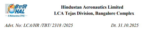 🔹 For candidates sponsored by HAL TTI Bangalore, the HAL Reference No. will be the Registration Number/ID/PB/Badge No. mentioned in the Intimation Letter from LCA Tejas Division.