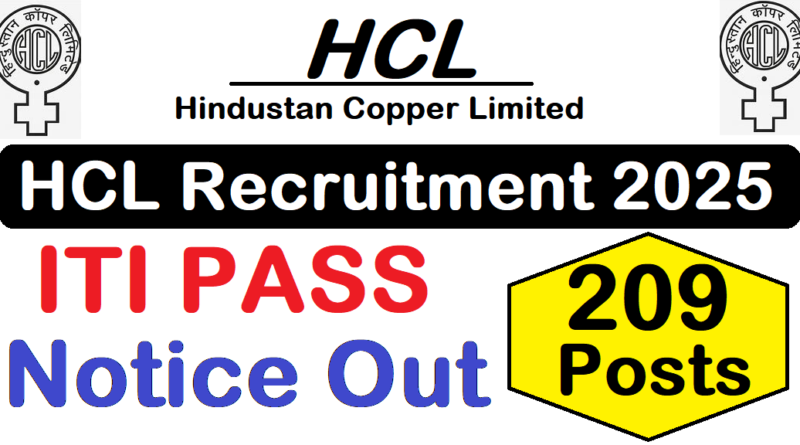 HCL Recruitment 2025 : Hindustan Copper Limited (HCL) की ओर से 209 Posts पर Recruitment निकली है जिसका Online form 19/05/2025 से शुरू है |HCL Recruitment 2025Online form 02/06/2025 तक भरा जायेगा | ITI Pass in various candidates HCL Recruitment 2025 online form भर सकता है | Interested and eligible candidates HCL Recruitment 2025 form भर सकते हैं | HCL Recruitment Full Notification निचे दिया गया हैI HCL Recruitment 2025 Apply Link निचे दिया गया है I