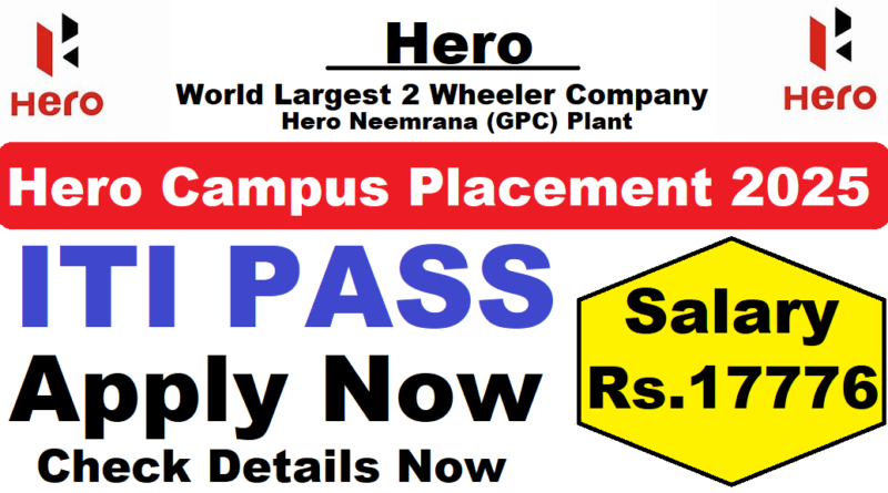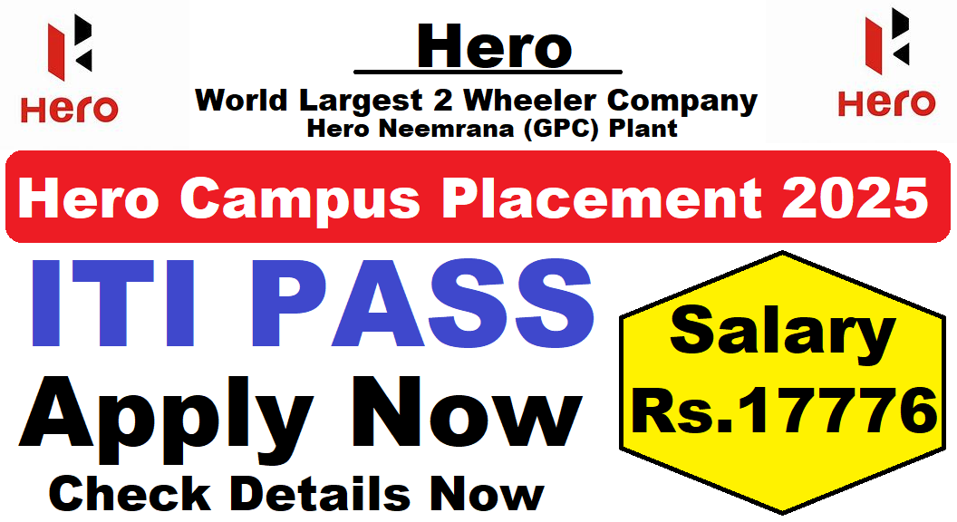 Hero Campus Placement 2025 : World Largest 2 Wheeler Company Hero Neemrana (GPC) Plant की ओर से All Technical & Non-Technical Posts पर Campus Placement निकली है जिसका Test Date 02 June 2025 , सुबह 09:30 बजे है|ITI Pass in various candidates Offline Campus Placement में शामिल हो सकते हैI आपकी Campus Test Location – New K.P PVT ITI Ara, District – Bhojpur (Bihar) रहने वाला हैI Hero Campus Placement 2025 Full Notification निचे दिया गया है |