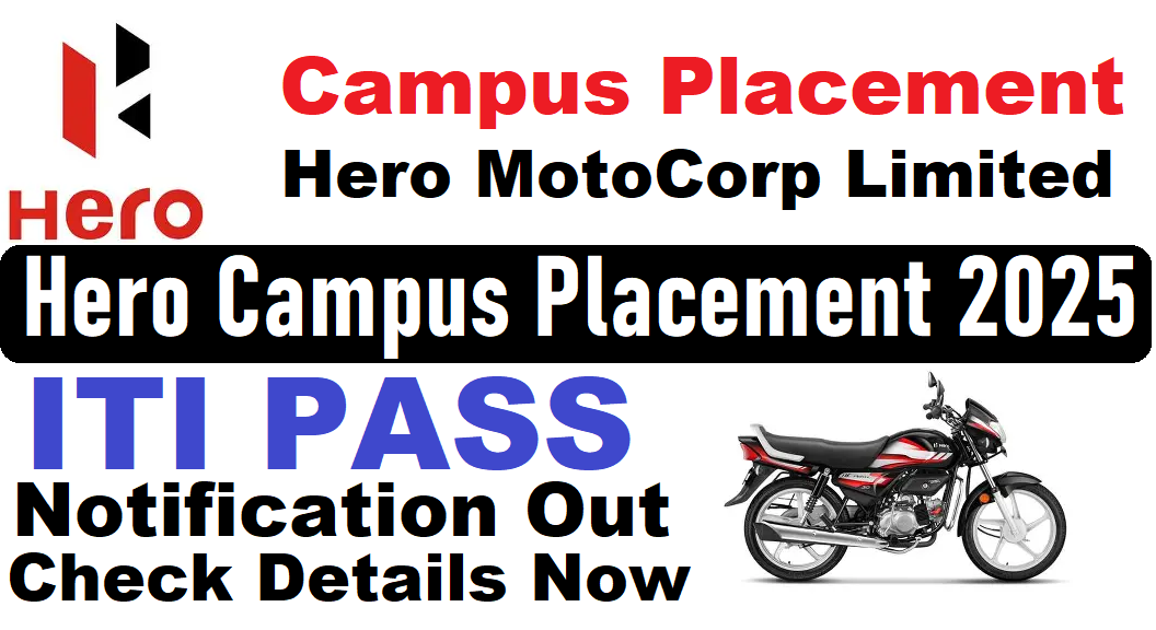 Hero Campus Placement 2025 : Hero MotoCorp Limited की ओर से Fitter, Welder, Electrician, Machinist, Turner, Painter, MMV, Tractor Mechanic, Diesel Mechanic, Electronics Mechanic, Instrument Mechanic, RAC, Wireman, PPO, Sheet Metal, Mechanic Agriculture, Mechanic Air Condition, Copa Posts पर Campus Placement निकली है जिसका Interview Date 27,28 & 29 October 2025 , सुबह 09:30 बजे है|ITI Pass in various candidates Offline Campus Placement में शामिल हो सकते हैI आपकी Campus Placement Location – नीचे दिया गया हैI Hero Campus Placement 2025 Full Notification निचे दिया गया है |
