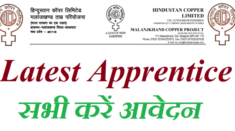 Hindustan copper Limited (HCL) Applications are invited in the prescribed format form from Indian National, for the under mentioned ITI trades, who have passed Industrial Training Examination from NCVT/SCVT affiliated institutes and possess the requisite educational qualification as mentioned against each trade for undergoing Apprenticeship Training at Hindustan Copper Limited, Malanjkhand Copper Project under the Apprentices Act 1961: