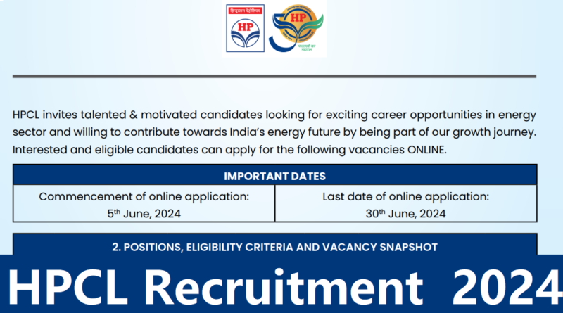 HPCL Recruitment 2024, 30th June 2024 Last Date