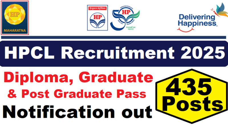 HPCL Recruitment 2025 : Hindustan Petroleum Corporation Limited (HPCL) की ओर से 435 Posts पर Recruitment निकली है जिसका Online form 01/06/2025 से शुरू है |HPCL Recruitment 2025 Online form 30/06/2025 तक भरा जायेगा |Diploma, Graduate & Post Graduate Pass in various candidates HPCL Recruitment 2025 online form भर सकता है | Interested and eligible candidates HPCL Recruitment 2025 form भर सकते हैं | HPCL Recruitment Full Notification निचे दिया गया हैI HPCL Recruitment Apply Link निचे दिया गया है I