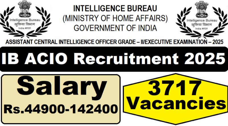 IB ACIO Recruitment 2025, 3717 Vacancies, Assistant Central Intelligence Officer Post Latest Vacancy 2025, 10/08/2025 Last Date