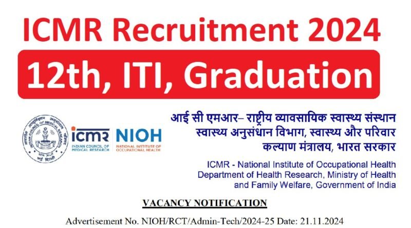 ICMR NIOH Recruitment 2024, ITI, 12th, Graduation latest vacancy 2024, 11-12-2024 last date