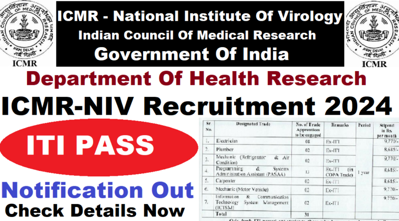 ICMR NIV Apprentice Recruitment 2024, ITI Pass Latest Vacancy 2024, 26/12/2024 Last Date